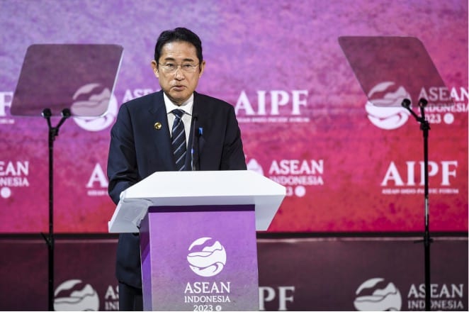 Prime Minister of Japan Fumio Kishida delivers his presentation as keynote speaker on the second day of the ASEAN-Indo-Pacific Forum (AIPF) in Jakarta, September 6, 2023. (Photo: Media Center of ASEAN Summit 2023/Galih Pradipta/aww/ratih)