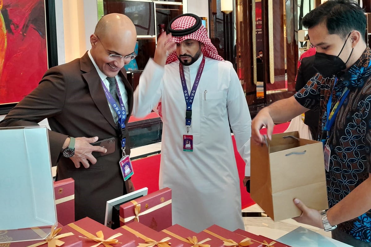(Jakarta, November 10, 2022) – A pyramid of dozens of red boxes sit on a table in front of a booth owned by the Center for Research and Development of Medicinal Plants and Traditional Medicines of Tawangmangu (B2P2TOOT). Several participants of the G20’s 2nd Health Ministerial Meeting (HMM) meeting were seen approaching this pile of boxes.