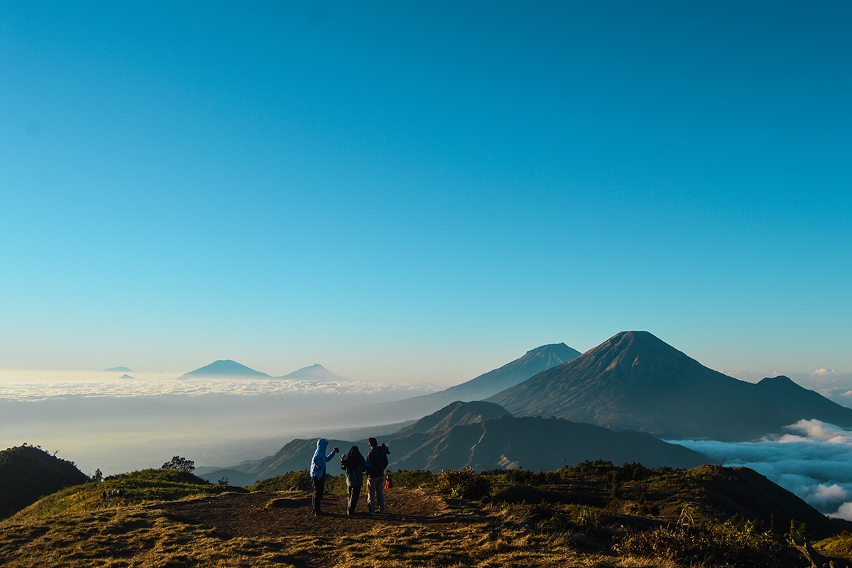 Terletak di antara Kabupaten Batang, Kabupaten Wonosobo, dan Kabupaten Kendal, Gunung Prau merupakan titik tertinggi di Dataran Tinggi Dieng. Selain memiliki medan pendakian yang cukup mudah untuk pemula, gunung ini juga menawarkan pemandangan yang hebat dari atas puncaknya. Di sini kamu bisa menyaksikan pesona matahari terbit atau terbenam berwarna keemasan.