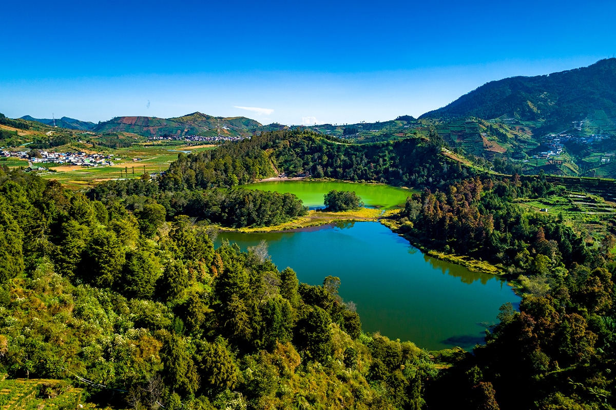 Di sini kamu juga bisa berfoto ria di sekitar danau berwarna kuning kehijauan, danau dengan air murni yang terlihat seperti cermin, serta kawah belerang yang menakjubkan. Kompleks candi yang berdiri di sini sendiri merupakan peninggalan dari masa kejayaan kerajaan Hindu di Jawa pada abad ke-7 dan ke-8. Masing-masing candi kecil yang ada diberi nama sesuai dengan tokoh-tokoh dalam kisah Mahabarata seperti Bima, Gatotkaca, Arjuna, dan Srikandi. Candi-candi tersebut dipercaya berfungsi sebagai tempat tinggal para pendeta Hindu yang akan menyebarkan ajaran Hindu di masa lalu. Yang lebih kerennya lagi, kalo kamu dateng di waktu yang tepat, kamu bakal dimanjain sama pemandangan fenomena alam unik di mana matahari berwarna ‘emas’ dan ‘perak’ terbit di ufuk timur.