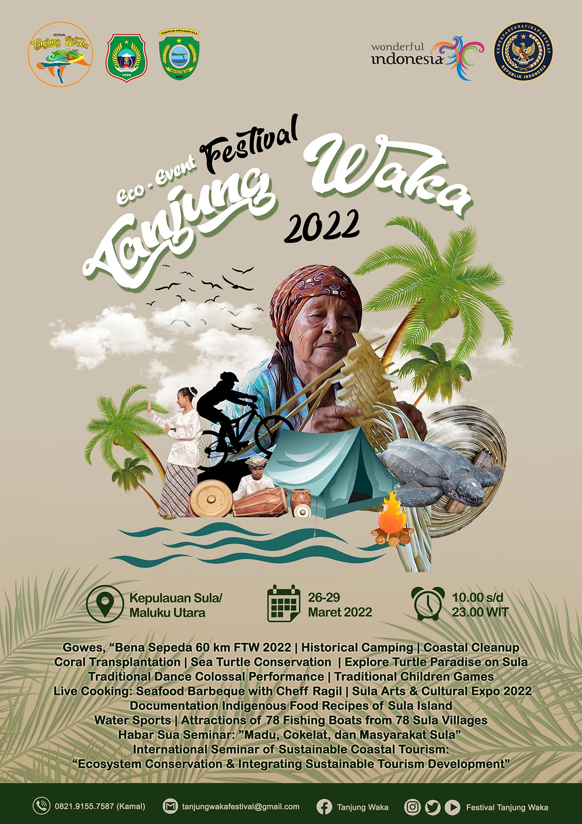 Pengen datang ke sebuah kegiatan yang fokus untuk melestarikan budaya sekaligus memelihara kelestarian alam? Festival Tanjung Waka (FTW) 2022 adalah pilihannya. Event #DiIndonesiaAja ini siap untuk menunjukkan keelokan alam Kepulauan Sula, Maluku Utara, memberikan edukasi tentang konservasi, serta mengenalkan berbagai budaya yang diwariskan oleh leluhur mereka.