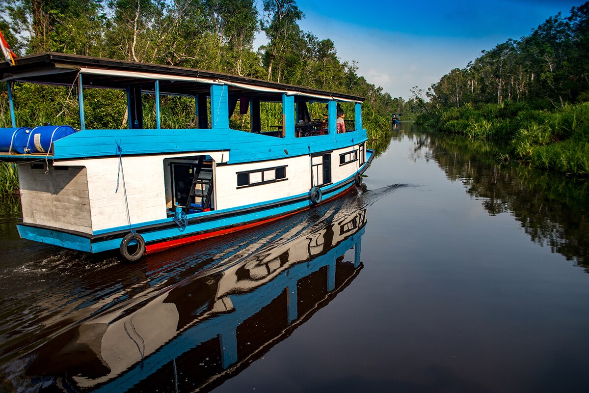 Kenalan sama kesenian tradisionalnya, sudah. Nyobain alat transportasi khas Kalimantan juga sudah. Yang belum adalah ketemu sama satwa endemiknya. Jadi, datanglah ke Taman Nasional Tanjung Puting. Ini adalah habitat asli orang utan Kalimantan. Beberapa jenis primata lain yang tak kalah langka juga tinggal di sini, lho. Ada bekantan, owa kalimantan, dan beruang madu.