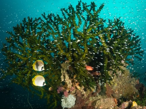 عندما تشرع في الغوص هنا، تأخذ عبارة "الاهتمام بالتفاصيل" معنى جديداً تلاحظه بينما يسبح فرس البحر الخشن حول أصابعك. ومشاهدة أسماك شيطان البحر و الوبيجونغس وهي تنزلق من خلفك. يوجد هناك مدارس من أسماك التونة، أسماك الشيم العملاقة، أسماك النهاشية، أسماك الخفاش وحتى أسماك العقام لاستكمال "قائمة الاجتماعات" تحت الماء. ناهيك عن المساعدة الودية من الأطوم والسلاحف البحرية. في أسفل الأعماق من البحر، يوجد المحار البحري العملاق بطول يبلغ أكثر من متر، والذي بدوره سوف يعطيك إحساساً حميماً عن قرب.
